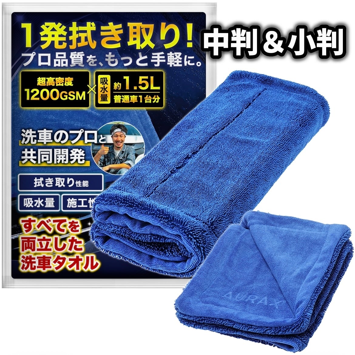 【個別発送】AURAX洗車タオル ブルー (中判&小判セット)