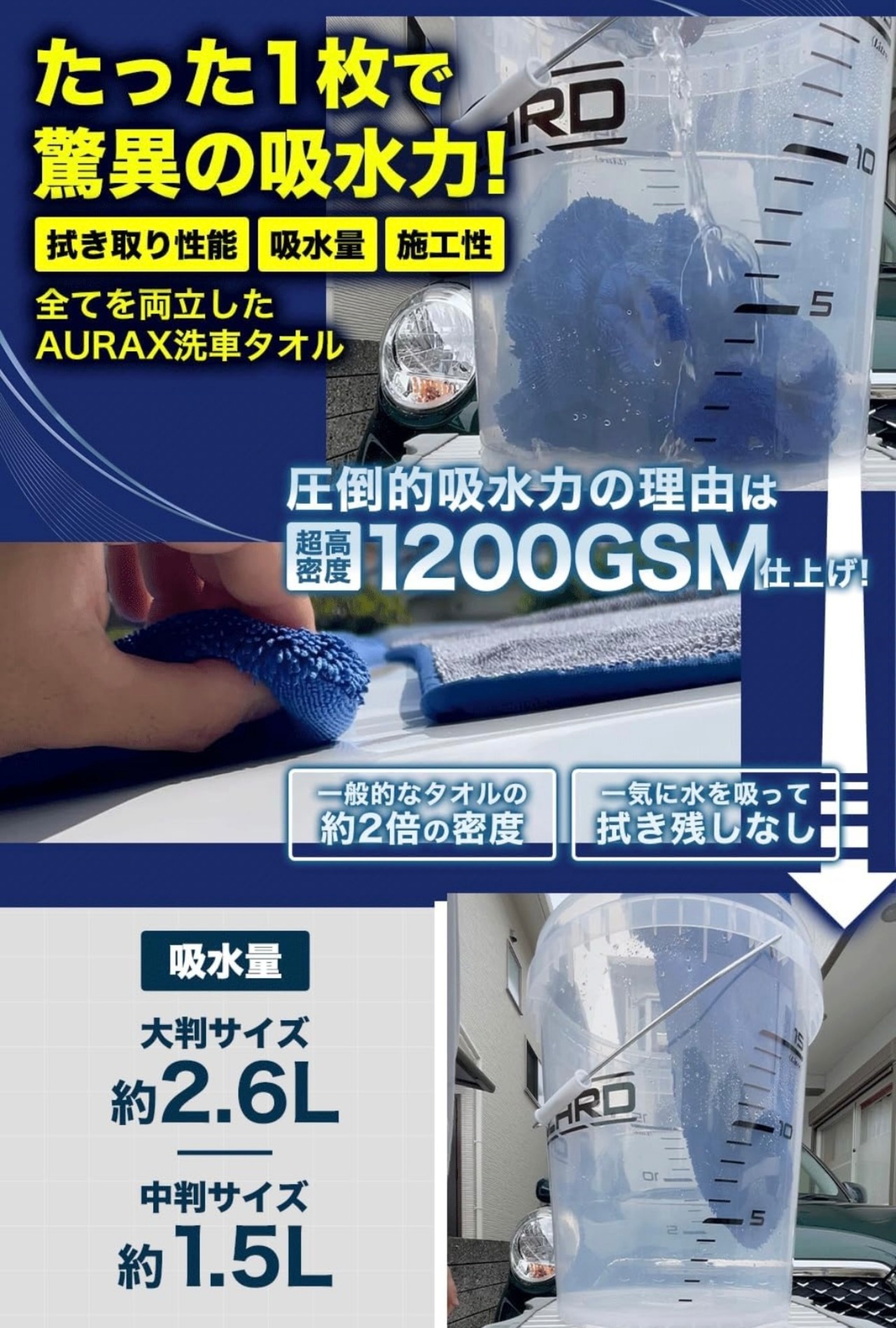 ■大型車で約0.75台、中型車で約1台、小型車で約1.25台も拭きあげが可能な『吸水量』を誇ります!