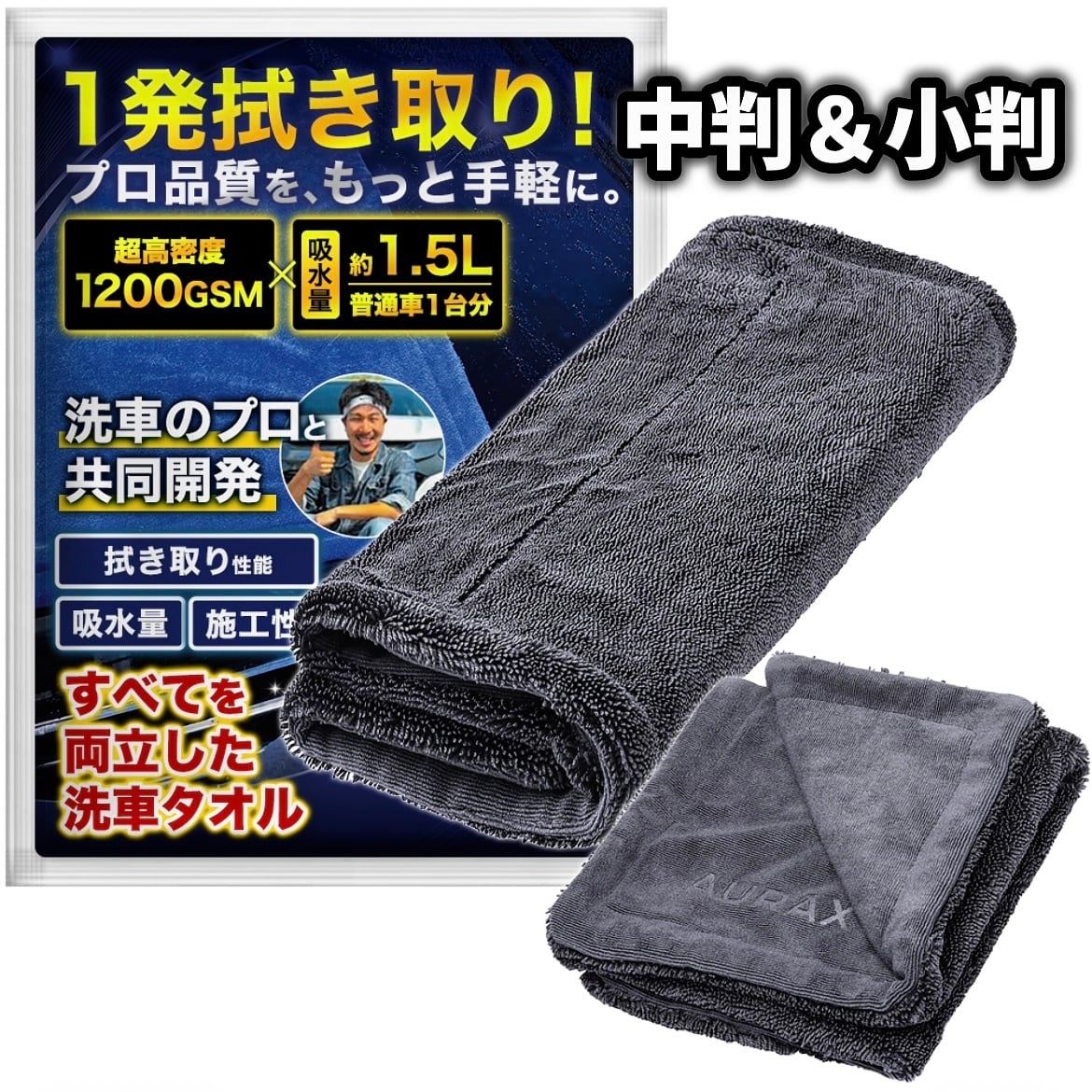【個別発送】AURAX洗車タオル グレー (中判&小判セット)